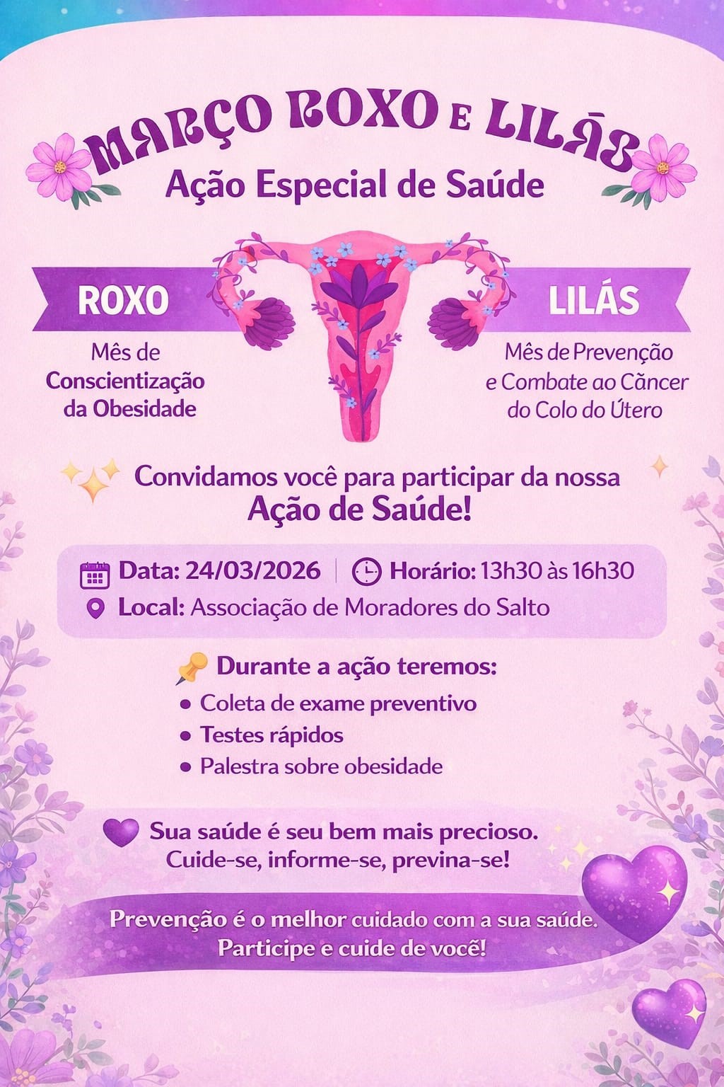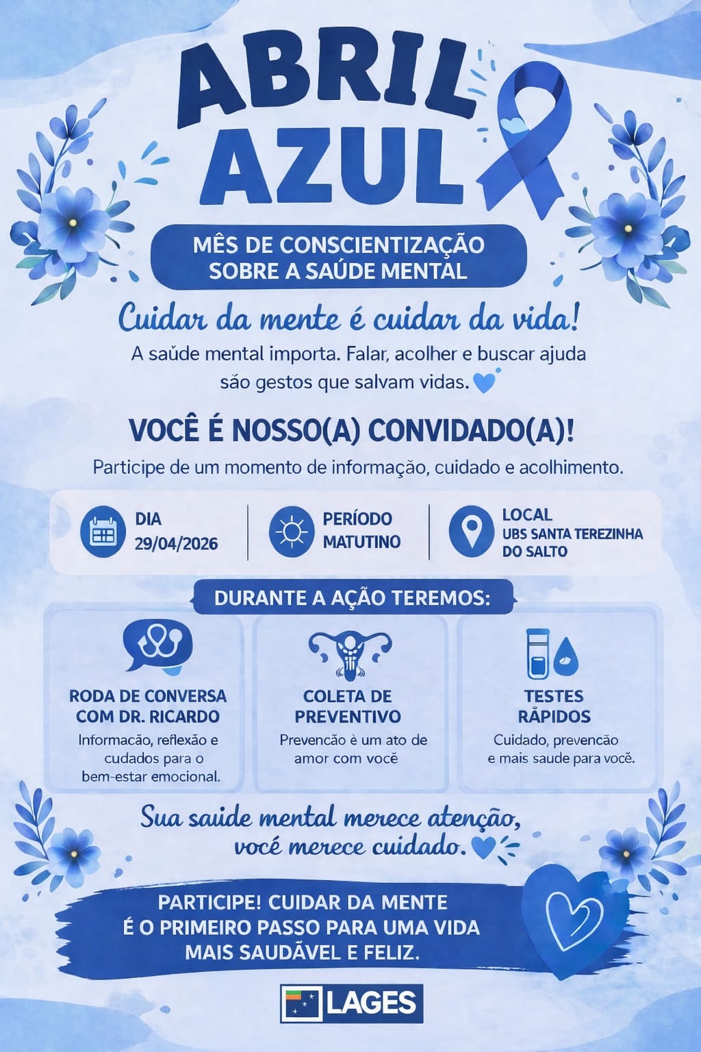 Ação em saúde alusivo ao abril azul. Neste dia será realizada roda de consversa sobre saúde mental, coleta de preventivo e testes rápidos.