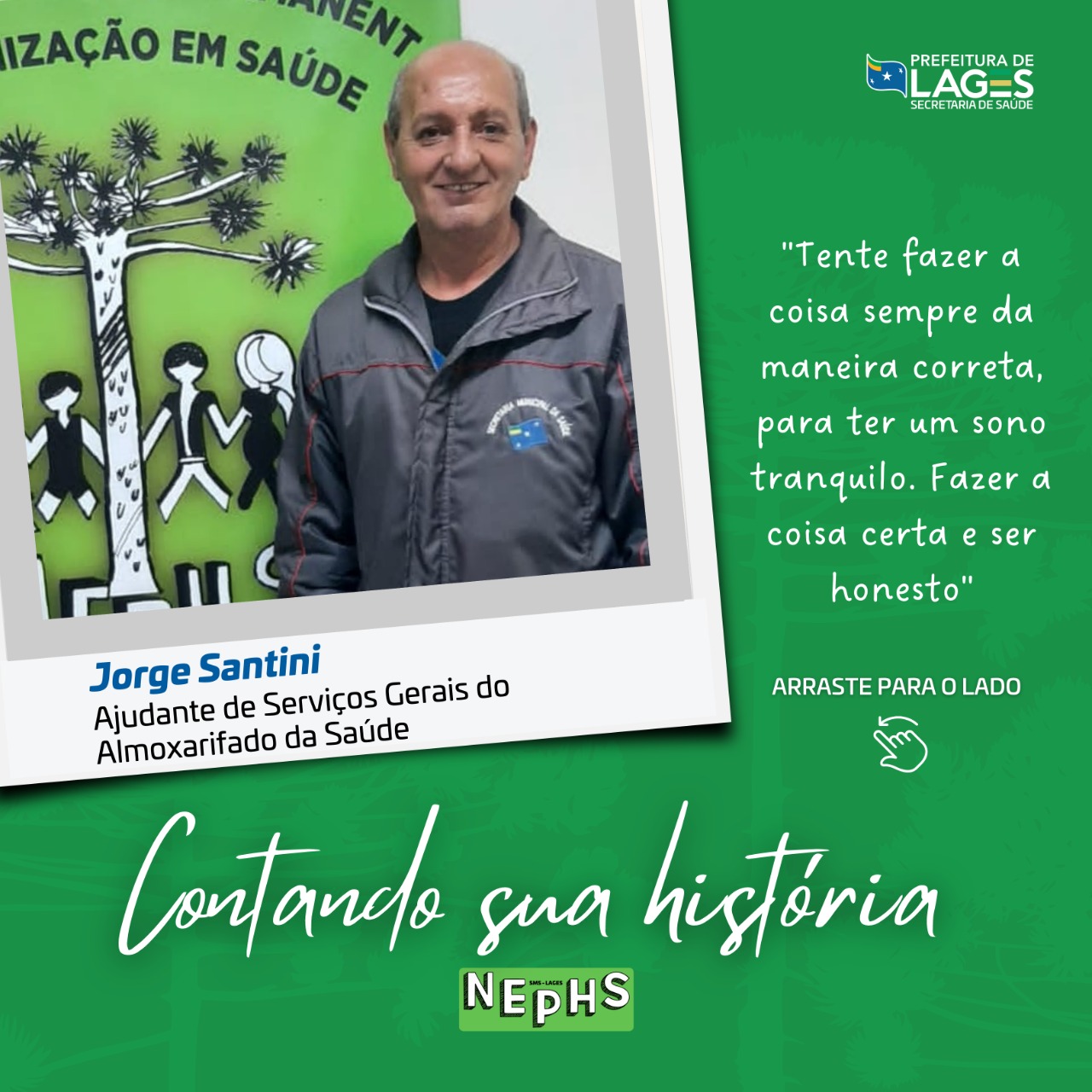 👉 Você que é trabalhador da Secretaria Municipal da Saúde, gostaria de contar também? Envie a sua história para o e-mail do NEPHS: nephs@saudelages.sc.gov.br